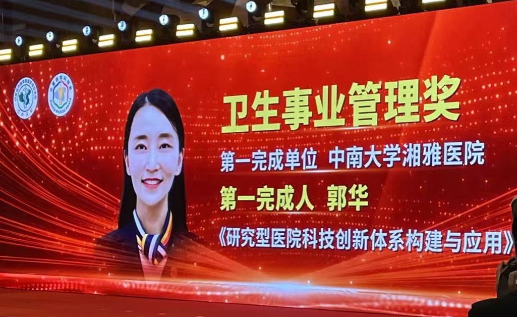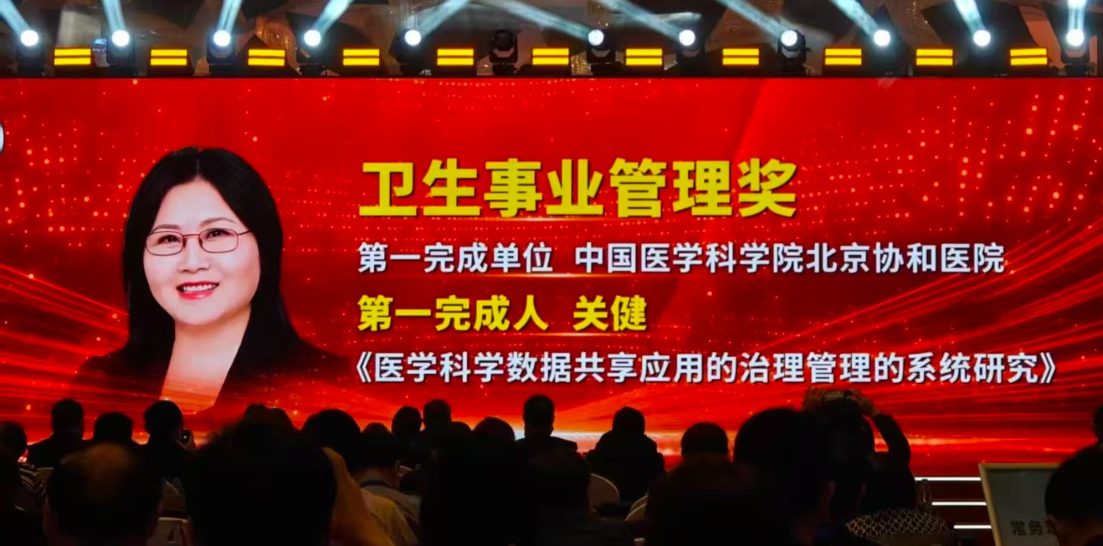 中华医学会医学科学研究管理学分会的候任主任委员关健教授牵头的“医学科学数据共享应用的治理管理的系统研究”和分会临床研究管理学组副组长郭华主任牵头的“研究型医院科技创新体现构建与应用”分别荣获华夏医学卫生事业管理奖。